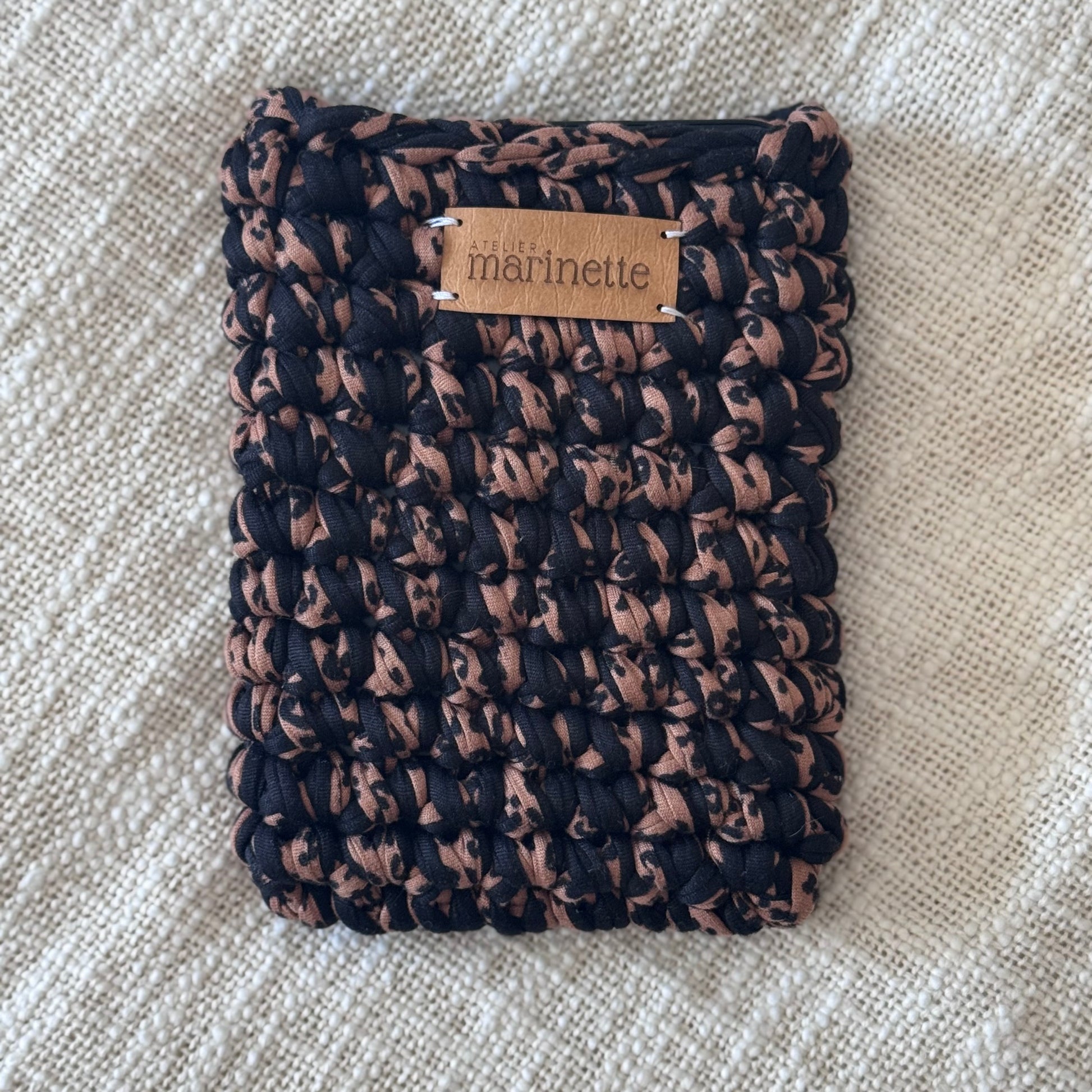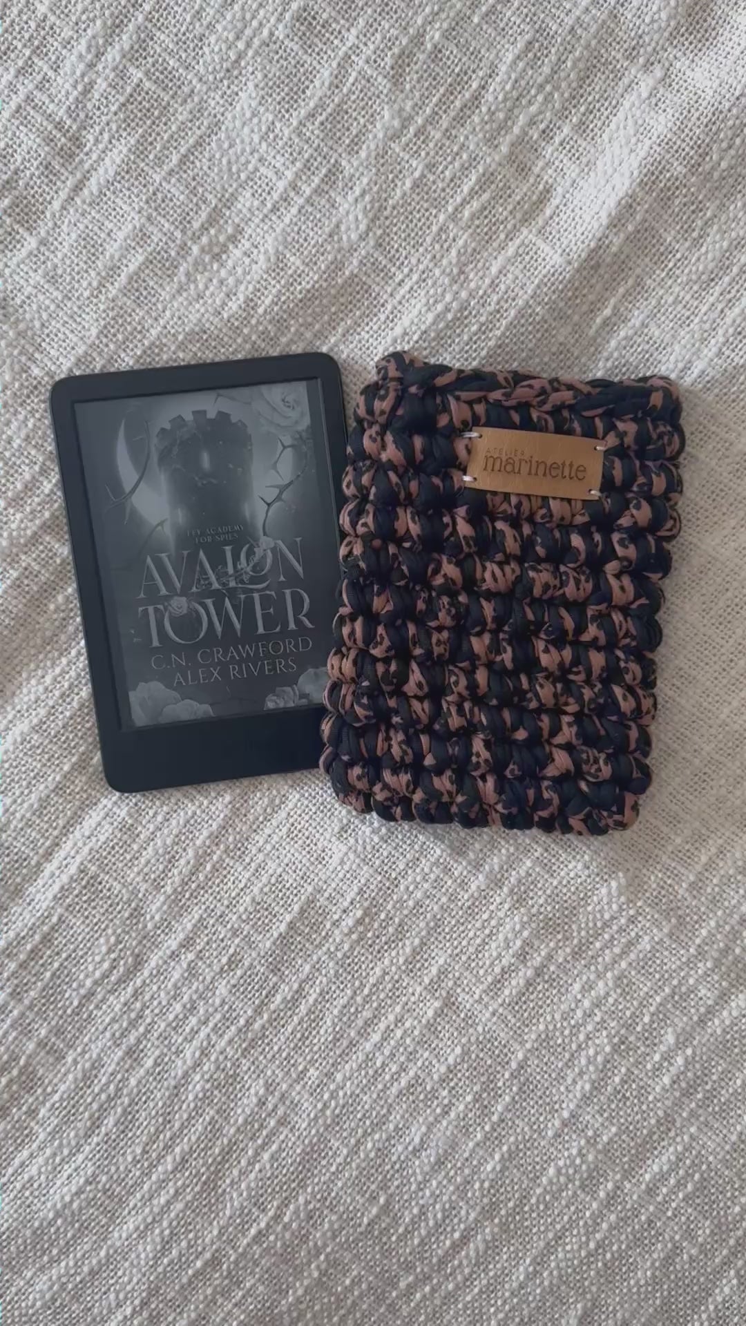 Housse en crochet artisanale pour liseuse 6" Kindle ou Kobo, fabriquée à la main à partir de fil de t-shirt recyclé