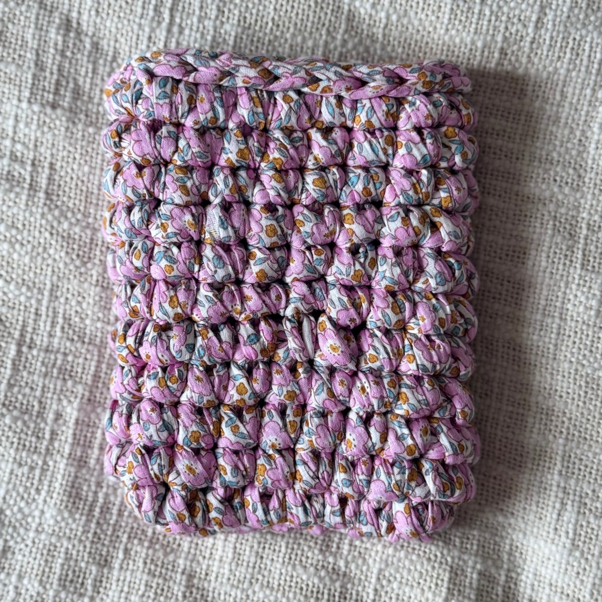 Housse en crochet artisanale pour liseuse 6" Kindle ou Kobo, fabriquée à la main à partir de fil de t-shirt recyclé