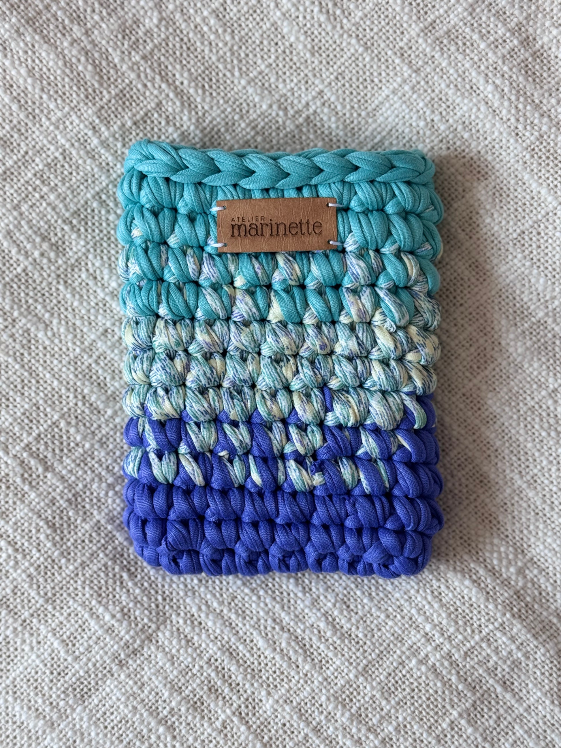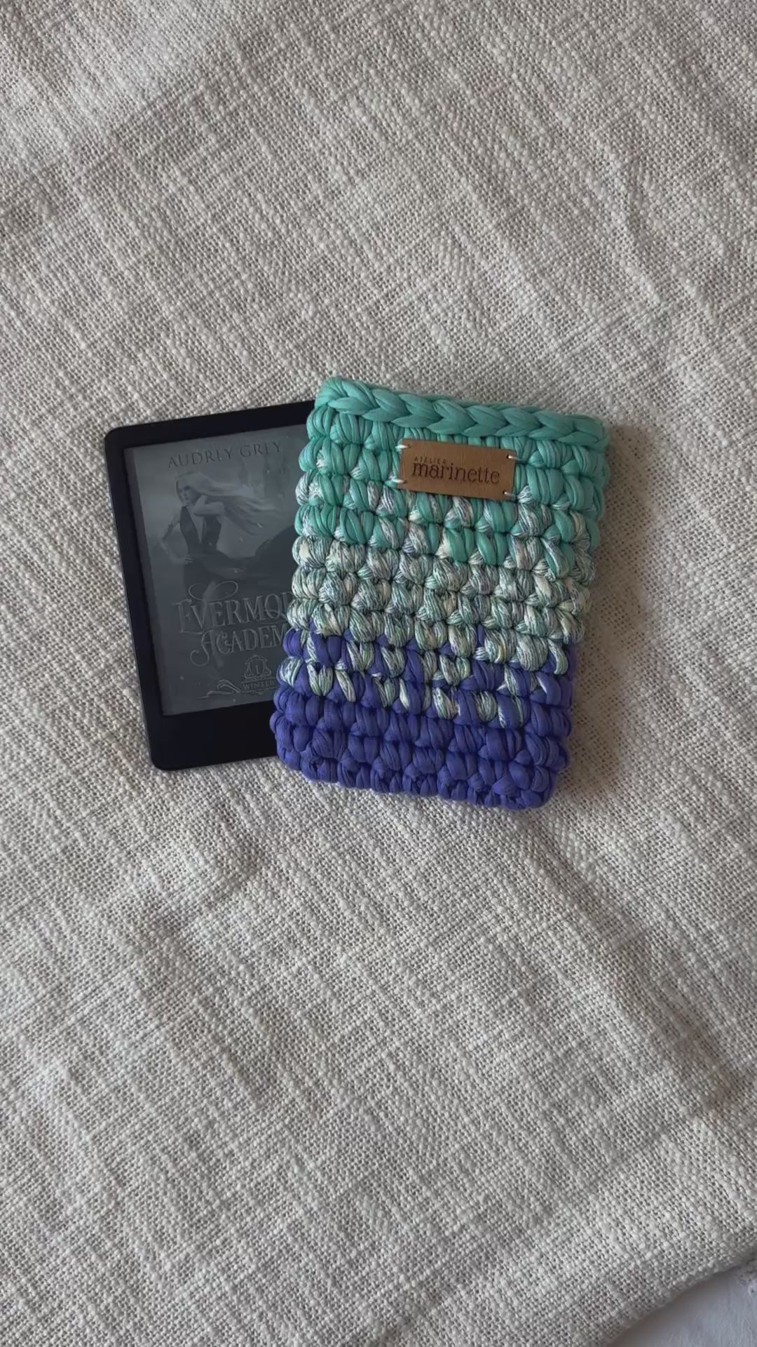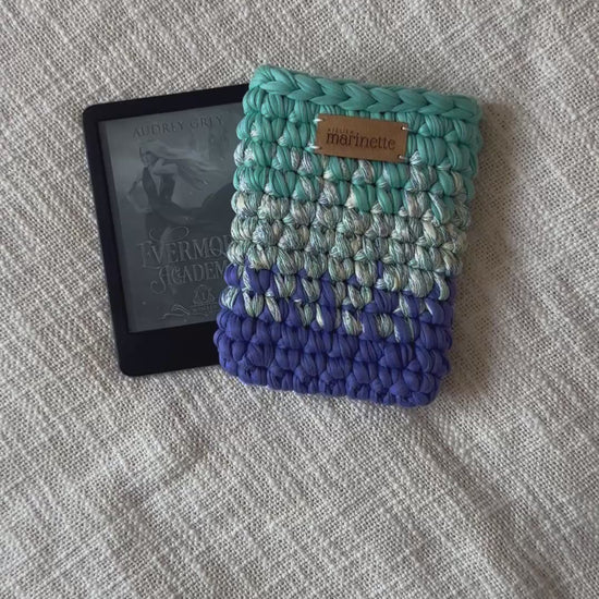 Housse en crochet artisanale pour liseuse 6" Kindle ou Kobo, fabriquée à la main à partir de fil de t-shirt recyclé