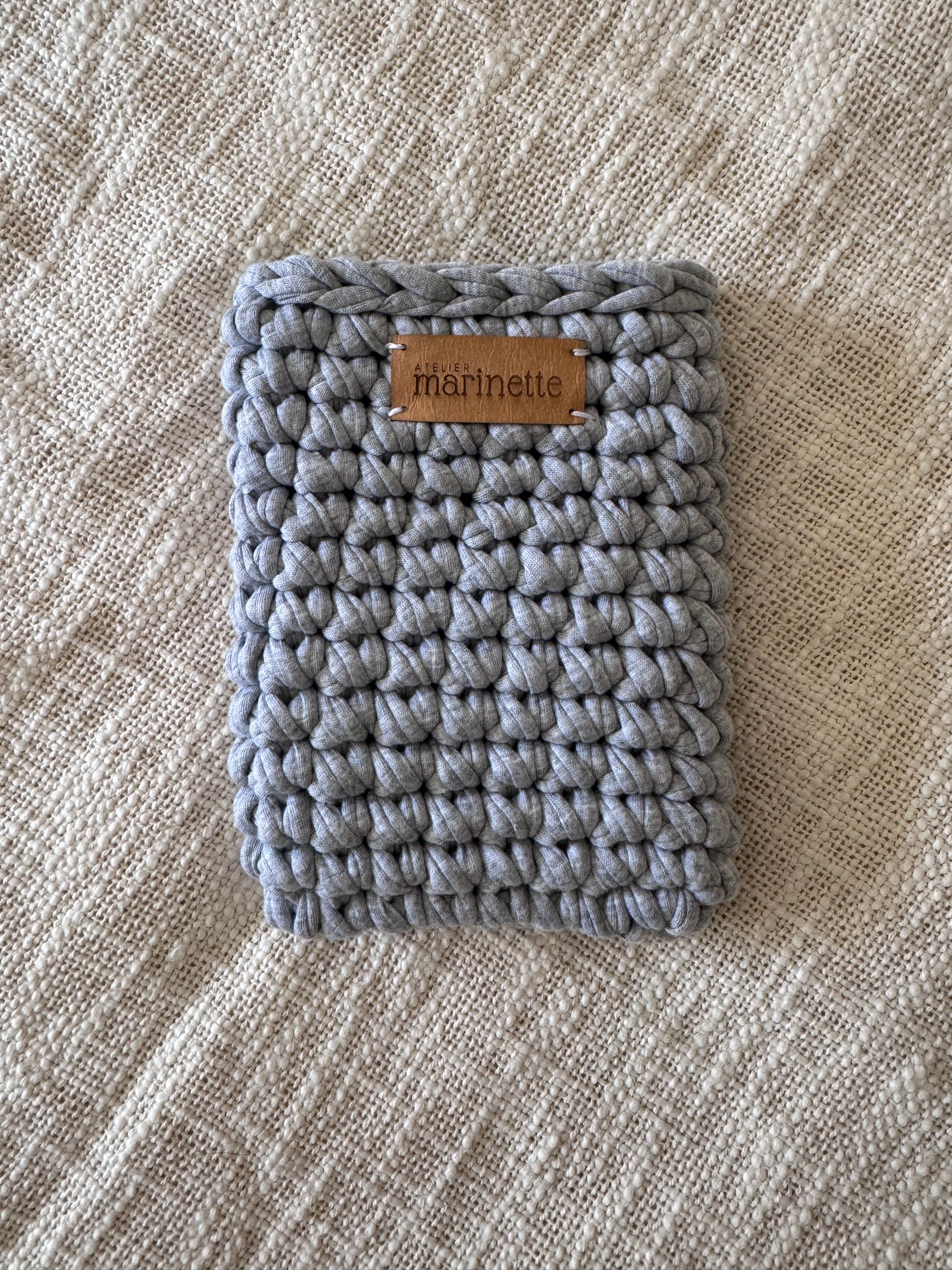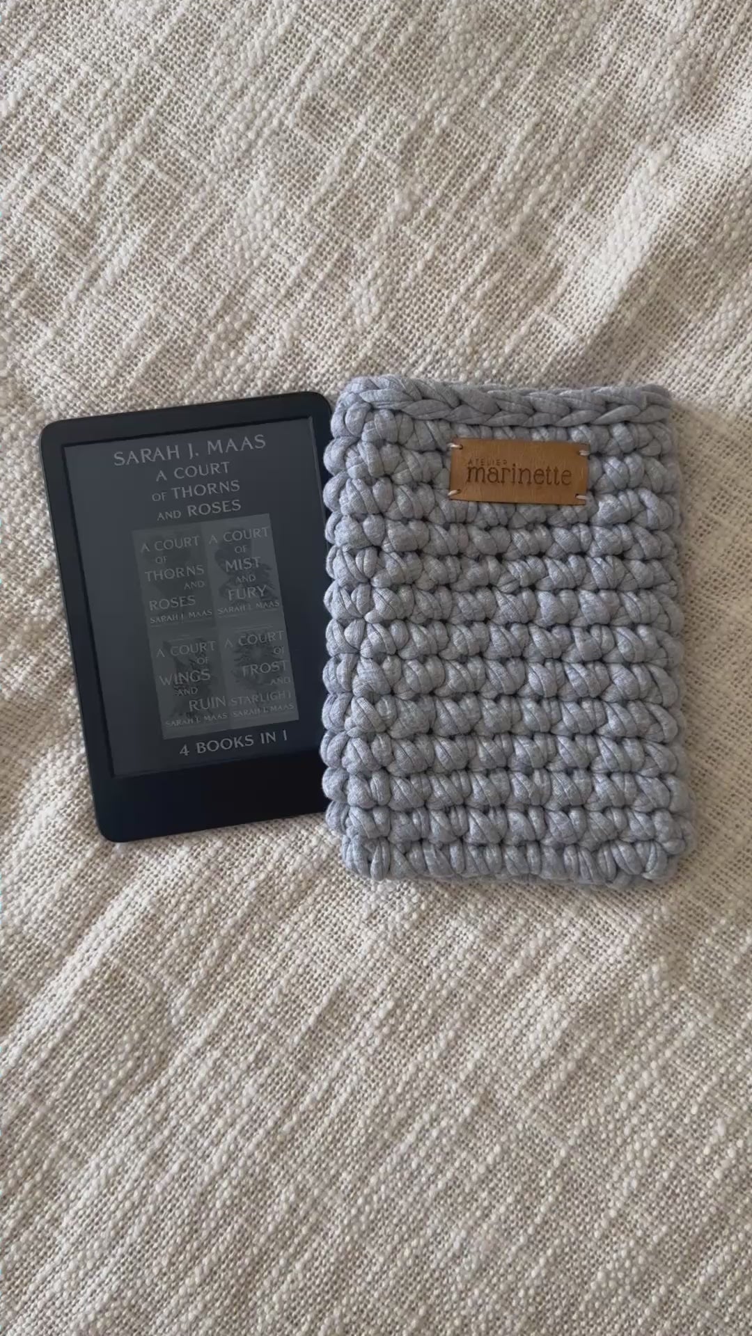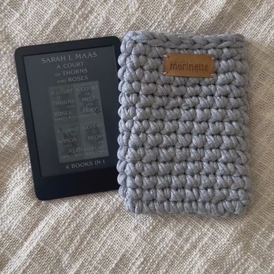 Housse en crochet artisanale pour liseuse 6" Kindle ou Kobo, fabriquée à la main à partir de fil de t-shirt recyclé