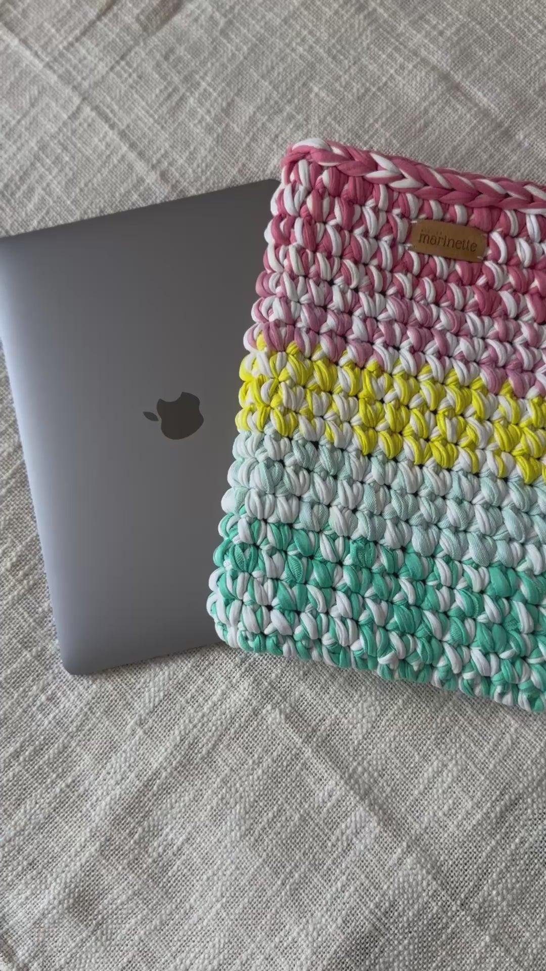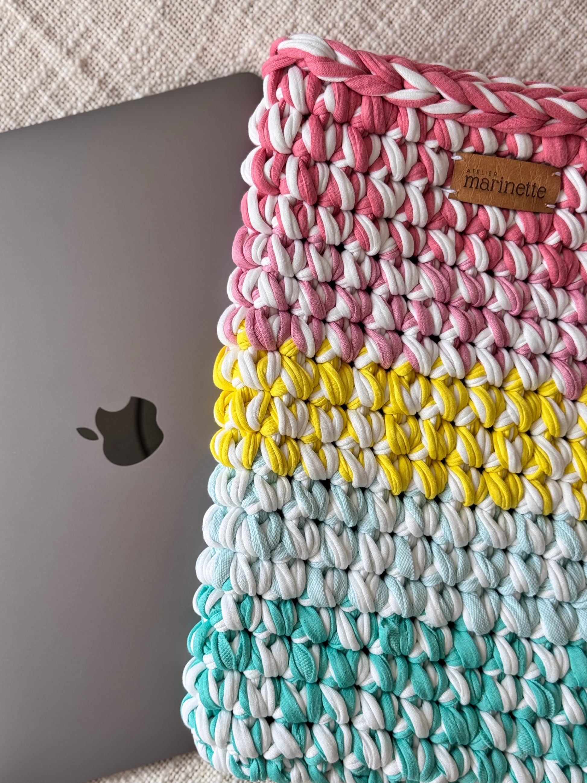 ✨ Housse en crochet unique, fabriquée à la main à partir de fil de t-shirt recyclé ✨