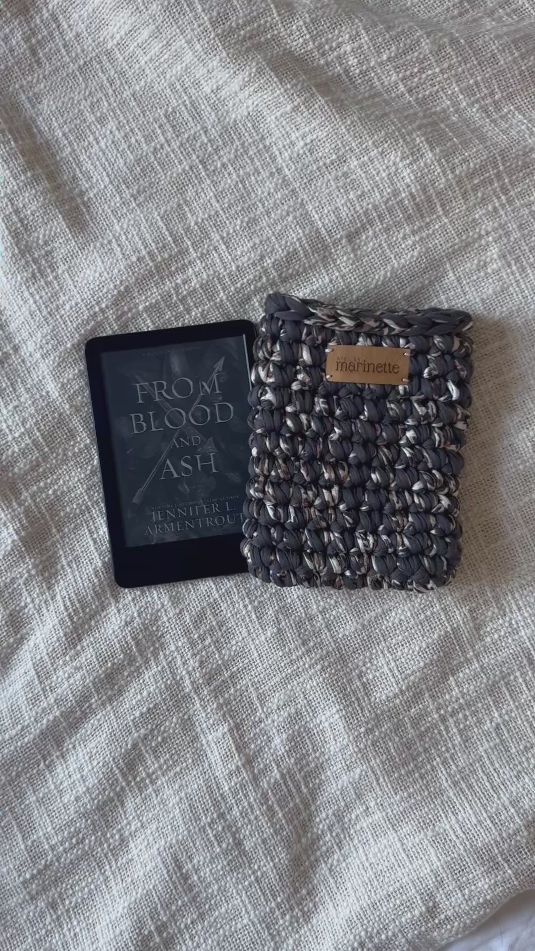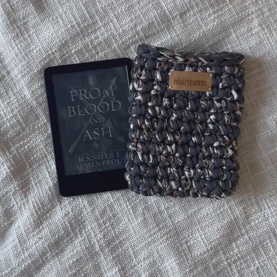 Housse en crochet artisanale pour liseuse 6" Kindle ou Kobo, fabriquée à la main à partir de fil de t-shirt recyclé